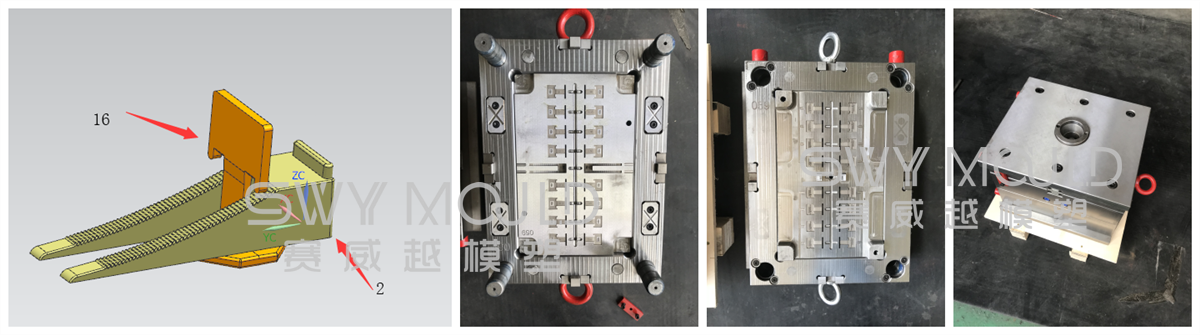 3. When a mold is designed with the angle lifter mechanism without kiss-off, it will not be necessary to mount springs under RP to prevent the product from being pulled back by the lifter.